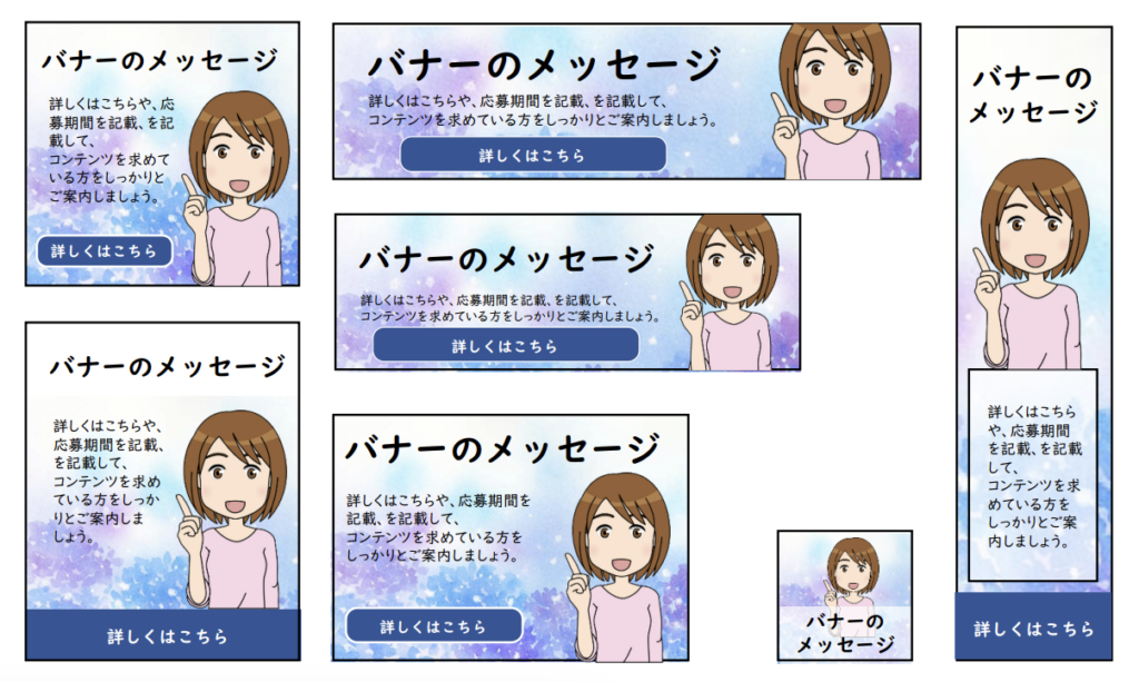 今までに作成したバナーから、別サイズを展開してもOKです。